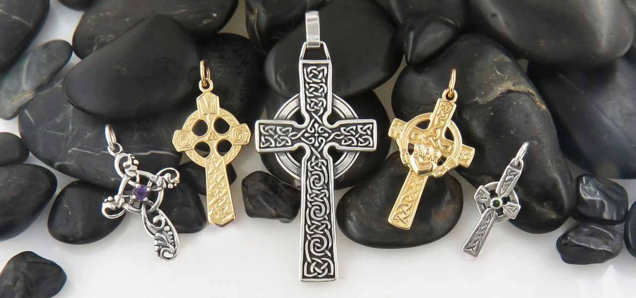The Claddagh Celtic cross pendant shown here in sterling silver is an original design by...
