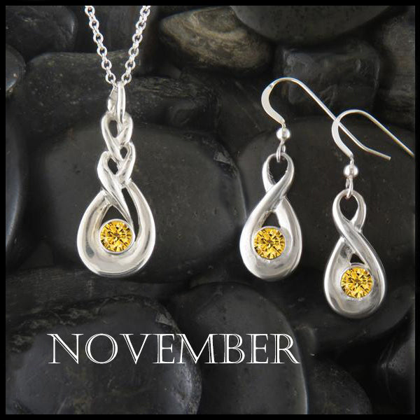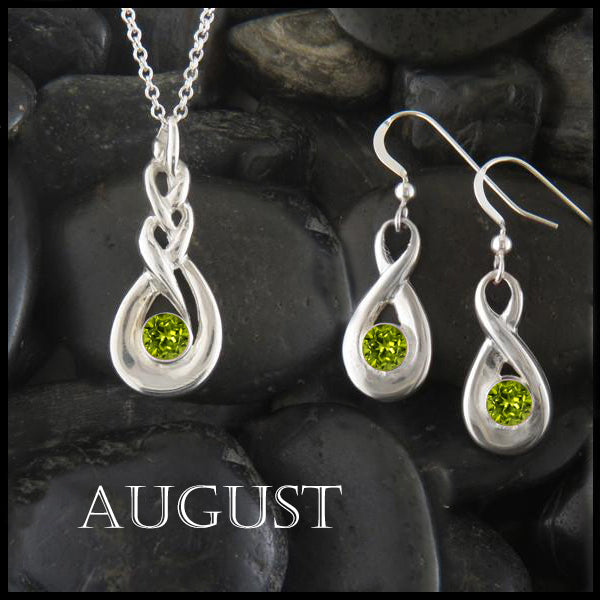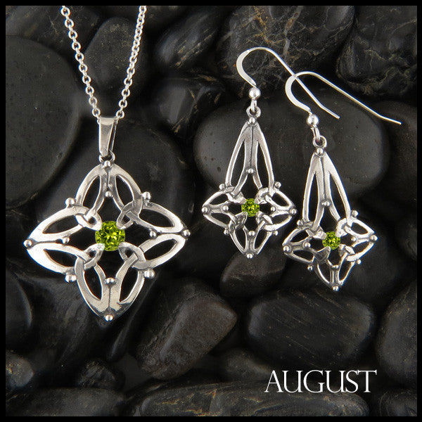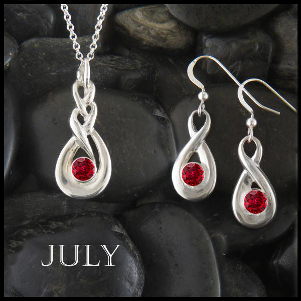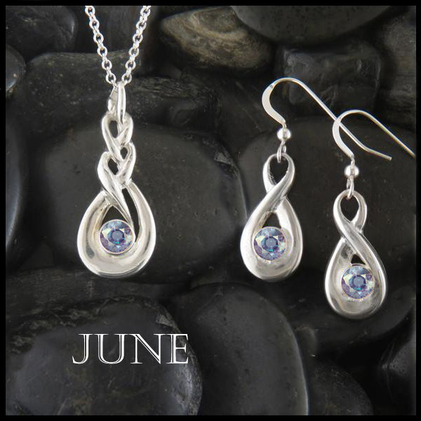 The Sterling Silver Celtic Birthstone Pendant on 18" cable chain with drop earrings is set with your choice of simulated birthstones