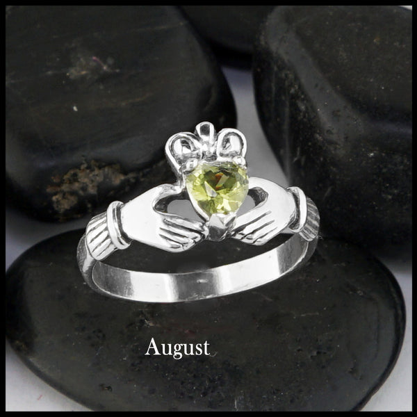 Simulated Birthstone set in Sterling Silver Claddagh Ring. All months are available in sizes 5...
