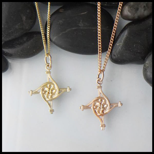 The Claddagh Celtic cross pendant shown here in 14K yellow gold is an original design...
