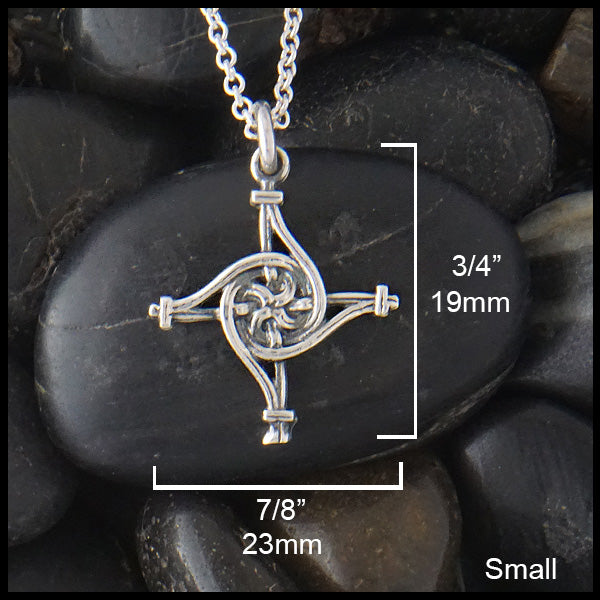 Angular and geometric St. Brigid's Cross in Sterling Silver. Shown on an 18" cable chain....
