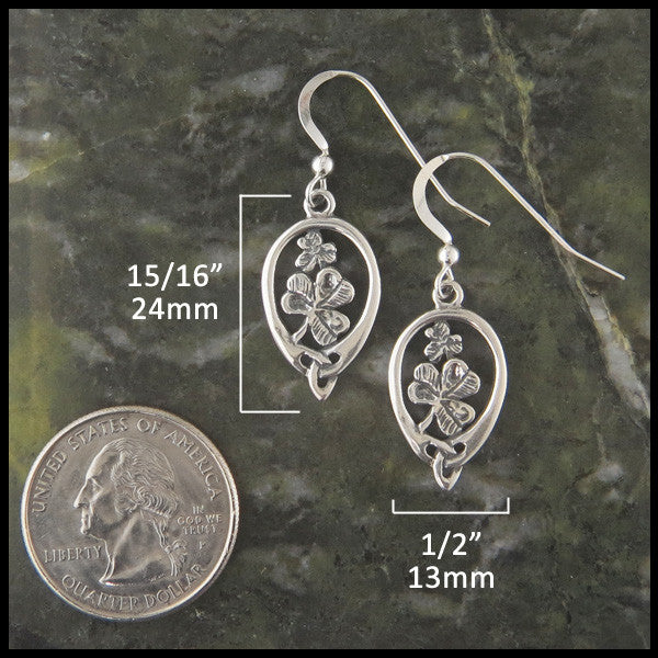 These oval trinity framed Shamrock Earrings are Sterling Silver. The shamrock is a traditional symbol of Ireland and Irish heritage. Framed in the Celtic trinity these are a wonderful way to celebrate your Celtic heritage.