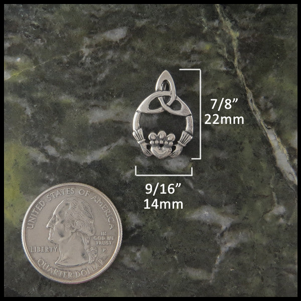 Sterling Silver Trinity Claddagh Pendant. Your choice of post or wire drop triquetra (trinity knot) earrings.