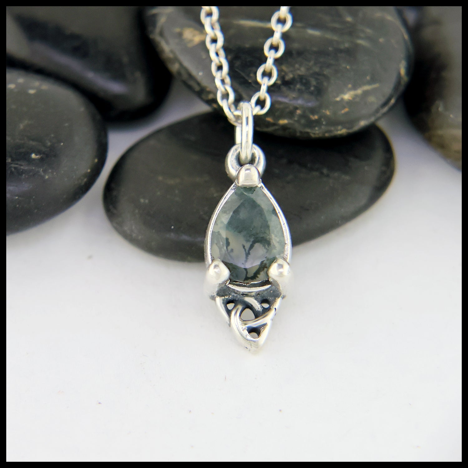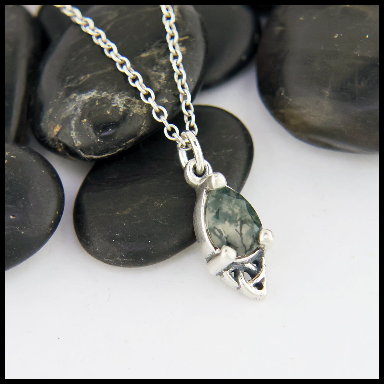 This Limited Edition Celtic Goddess pendant features a one of a kind Moss Agate. Due to the nature of this gemstone, each one will have its own unique attributes.