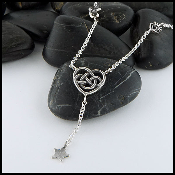 Large sterling silver heart knot pendant that is designed to carry your favorite ring, without...