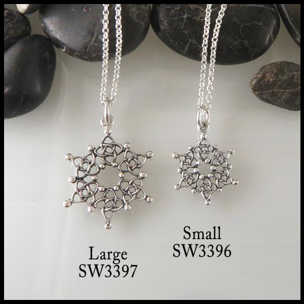 Sterling Silver circular pendant with Triskele spiral designs. Pendant comes in two sizes and with your choice...