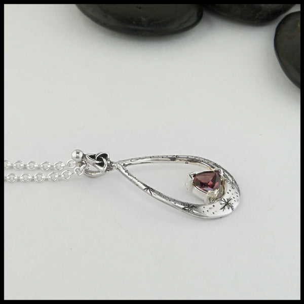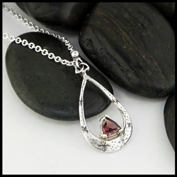 The Celtic flower knot pendant in Sterling Silver set with genuine Amethyst or Garnet cabochon stones...