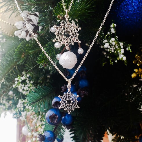Sterling Silver teardrop frame pendant with whimsical vine and flower designs. Pendant is pictured on...