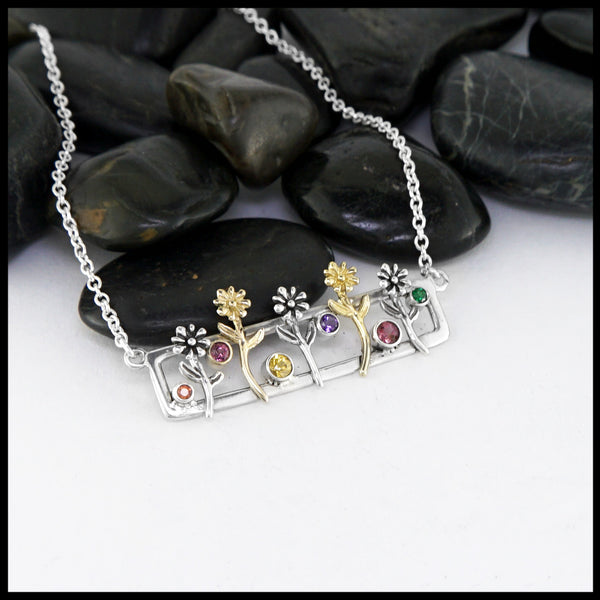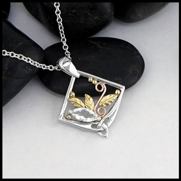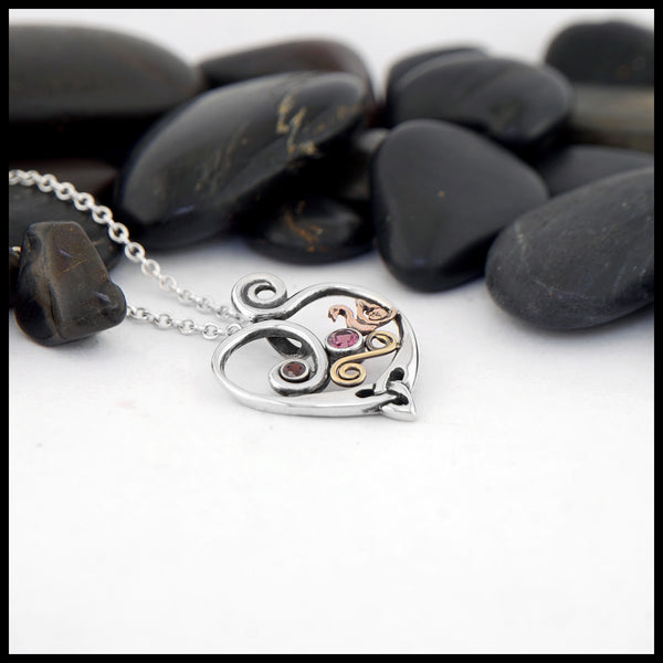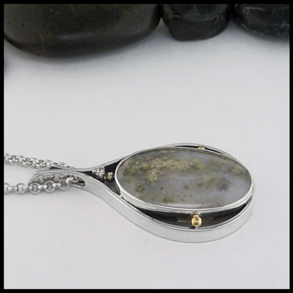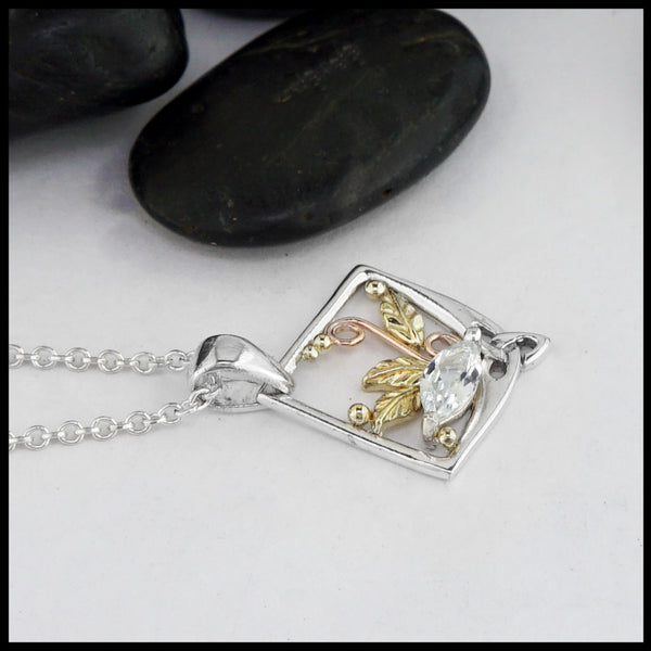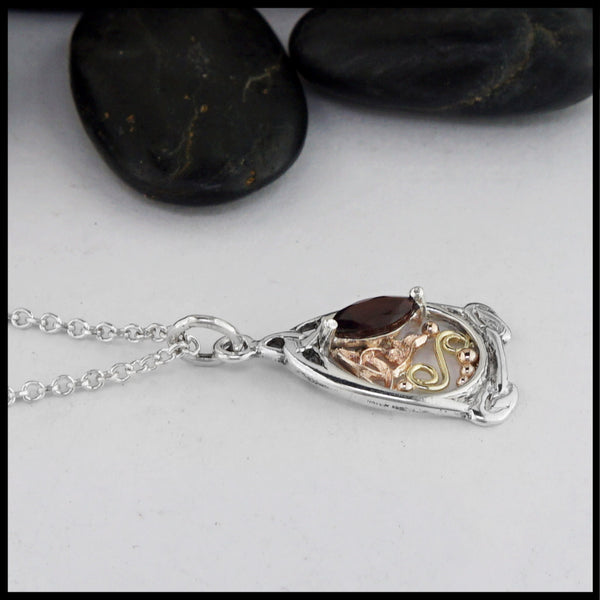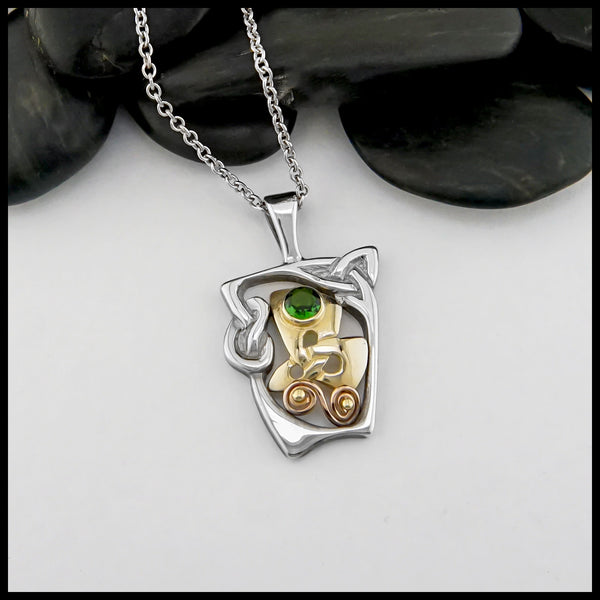 Custom Pendant in Sterling Silver with 18K Yellow and 14K Rose Gold accents, set with...