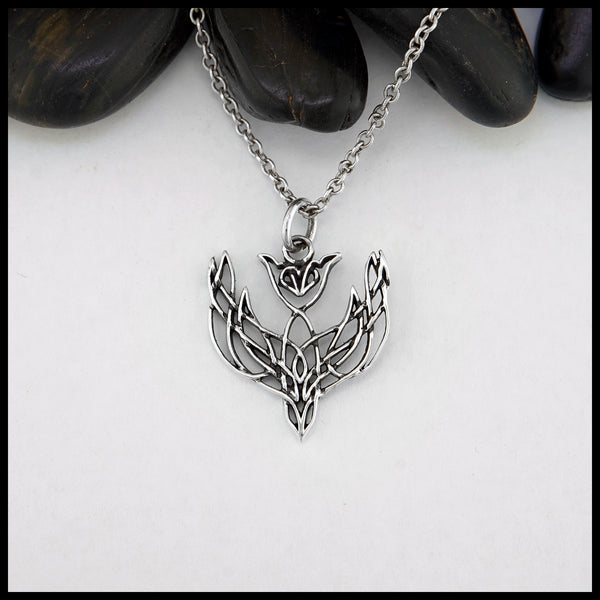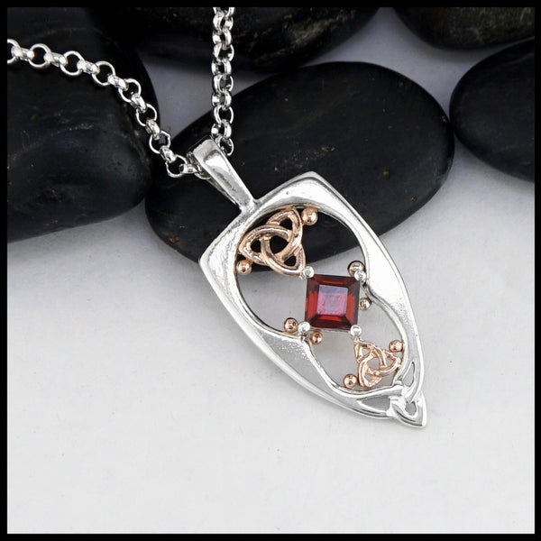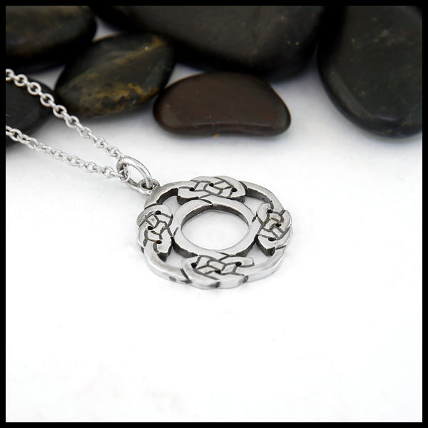 Sterling Silver pendant with elongated knotwork designs. Pendant is available with your choice of chain....