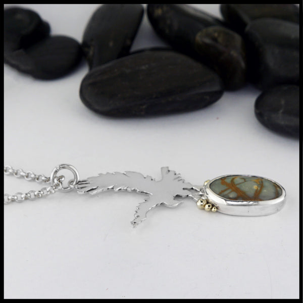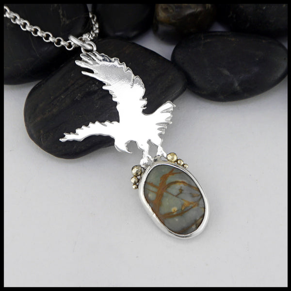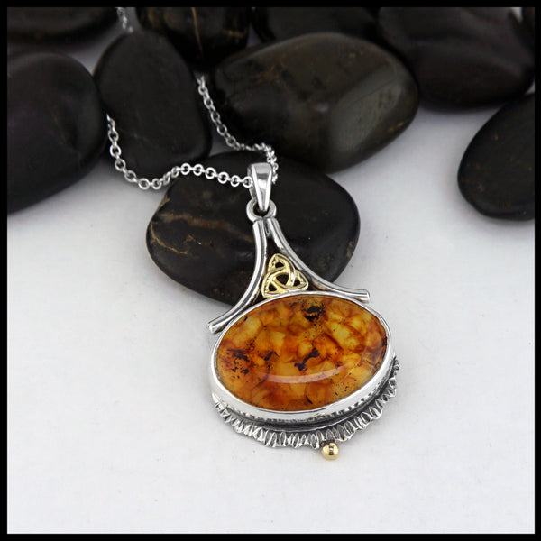 This Unique Sterling Silver Pendant features a bezel set Bumblebee Jasper that drops down into...