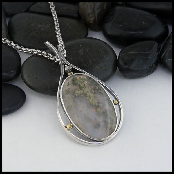 This unique pendant features a Teardrop Rainbow Moonstone set in a custom bezel and has...