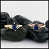 Handcrafted in 14K gold at Walker Metalsmiths in Andover, NY. Original designs by Stephen Walker. 7.5x5.5mm blue sapphire, six-prong setting. Beaded milgrain band detail. Available in 14K yellow, rose, or white gold.