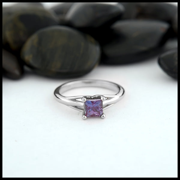 This ring is 14K Rose Gold set with a 4mm Blue/Green Sapphire in 14K White...