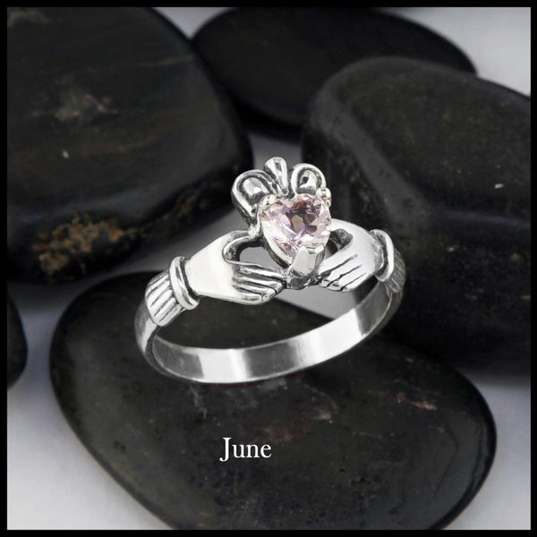 Simulated Birthstone set in Sterling Silver Claddagh Ring. All months are available in sizes 5...