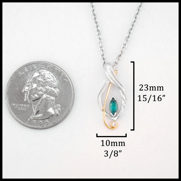 This custom pendant features a handmade sterling silver frame with a marquise blue topaz as...