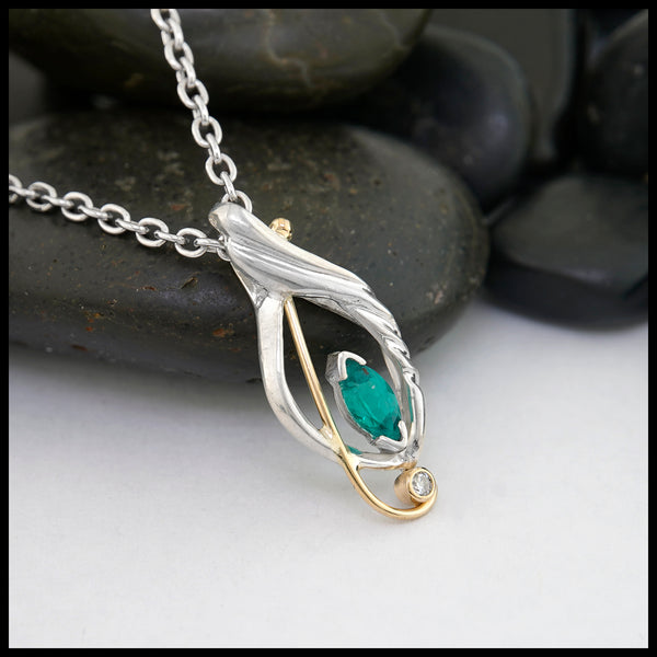 This unique pendant features a Marquise Emerald set in a custom Sterling Silver frame. The...