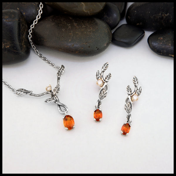 Set in Sterling Silver, this deep Cognac Smokey Topaz and Diamond Pendant radiates warmth! Created...