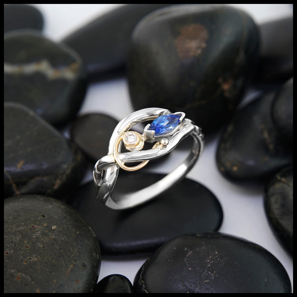 This handmade pendant showcases a marquise blue topaz at its core set in a custom...