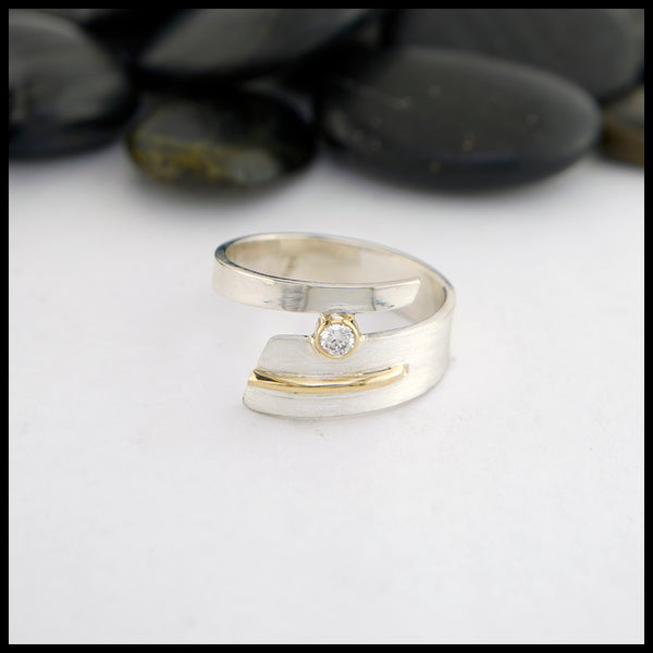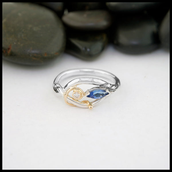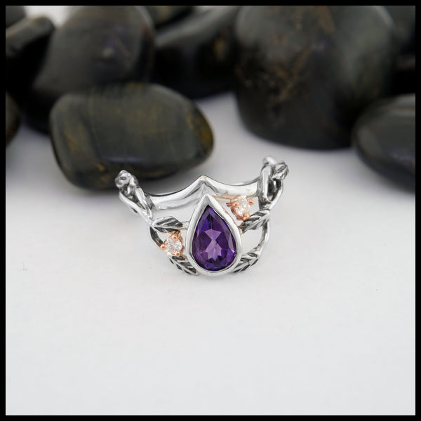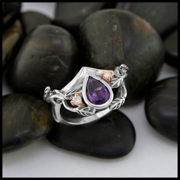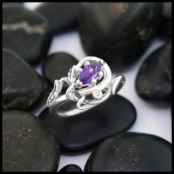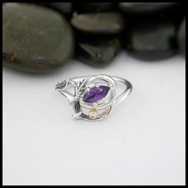 This Sterling Silver ring was handmade to resemble a leafy branch. It is set with...