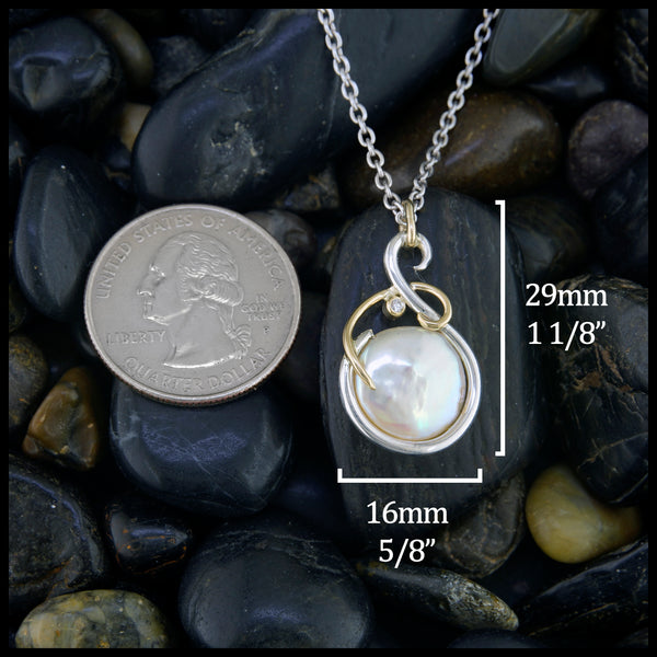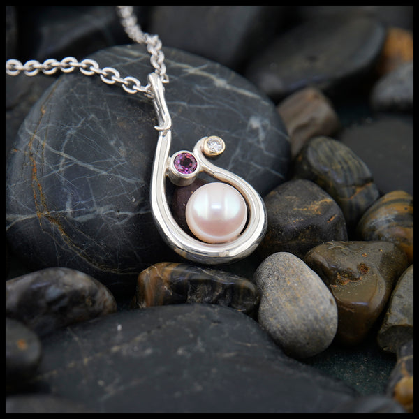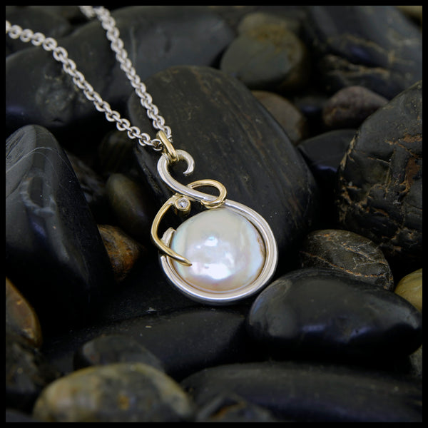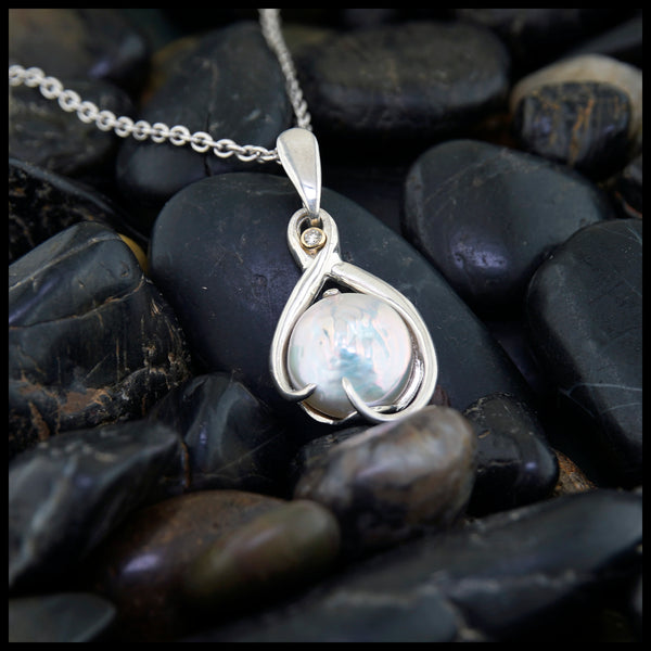 This unique pendant holds a Freshwater Pearl set in a flowing Sterling Silver frame. Accenting...