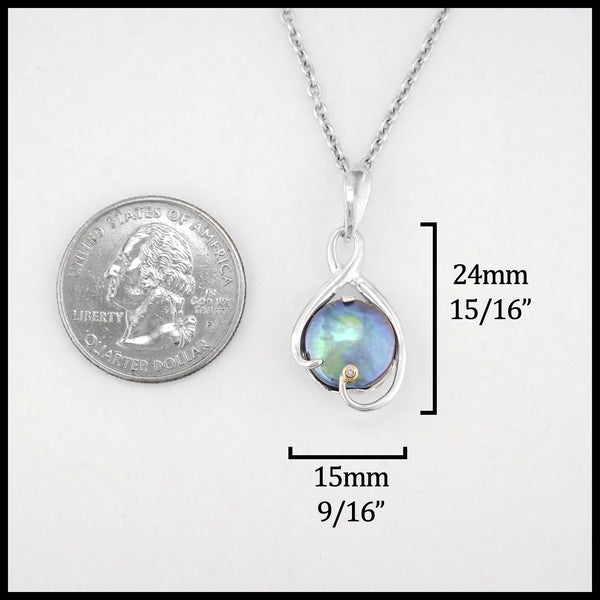 This Custom Sterling Silver pendant is set with a Mabe Pearl. Decorated with hand-chased galaxy...