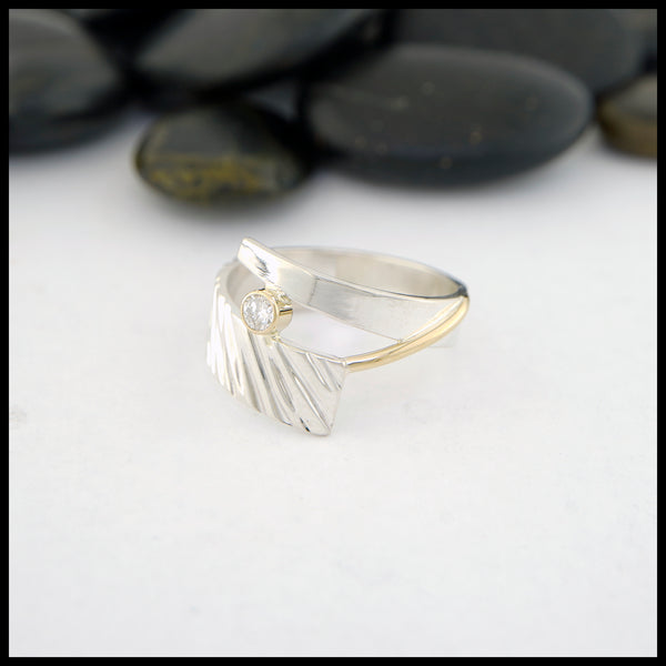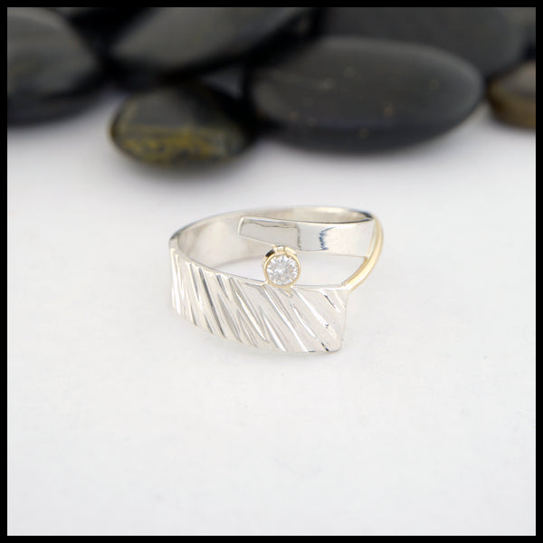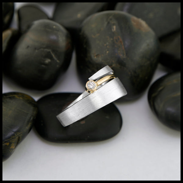 This custom sterling silver ring set features a high polished hammer finished ring with a...
