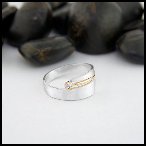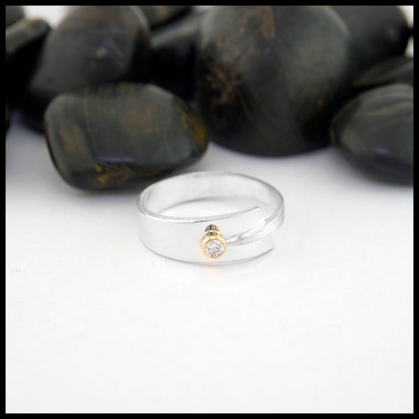 This ring showcases a bezel set .10CT diamond in 14K yellow gold in a custom...
