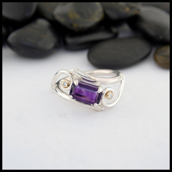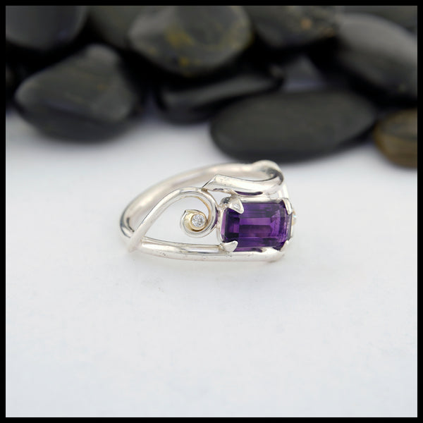 This stunning pendant is set with an emerald cut Amethyst set in Sterling Silver. Accenting...
