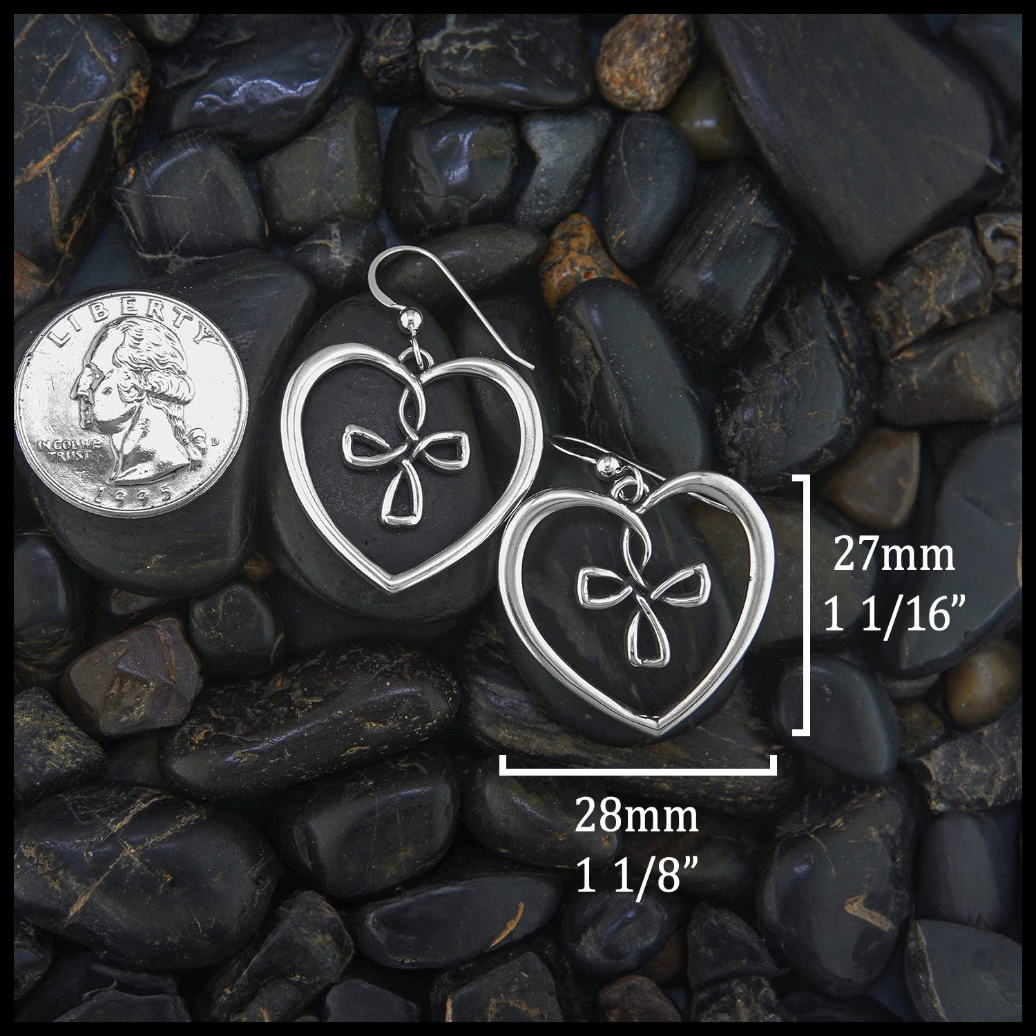 This sterling silver pendant is shaped in the form of a heart with a continuous frame twisting to create an open knot cross in the center of the heart. This pendant is featured on an 18" cable chain.