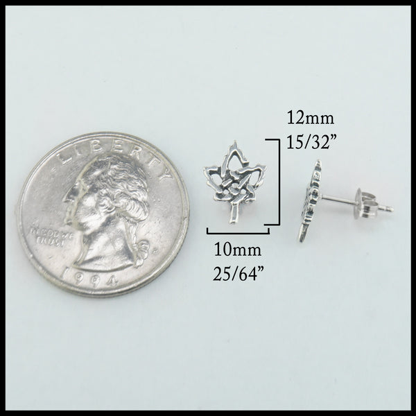 Celtic Maple Leaf post earrings in Sterling Silver. Earrings feature everlasting Celtic knotwork. View matching pendant....