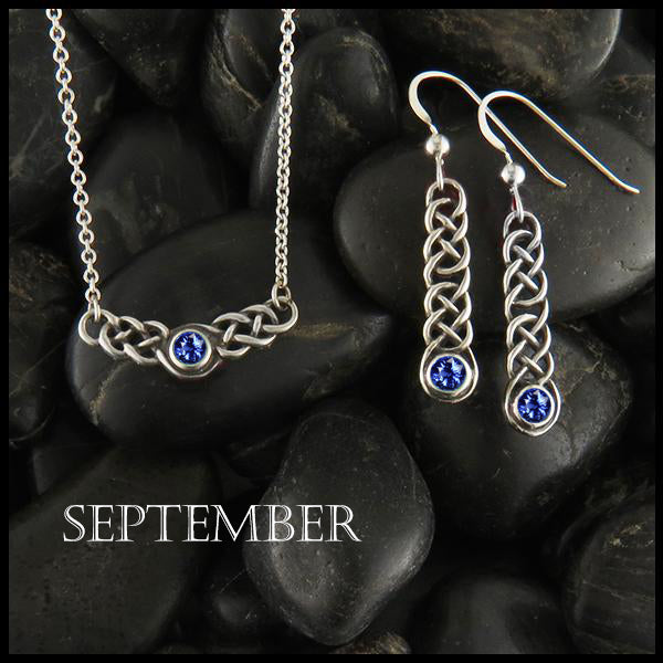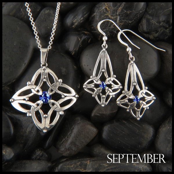 Sapphire, Tsavorite, or Ruby Celtic Heart Pendant and Earring Set Earrings and Pendant are a...