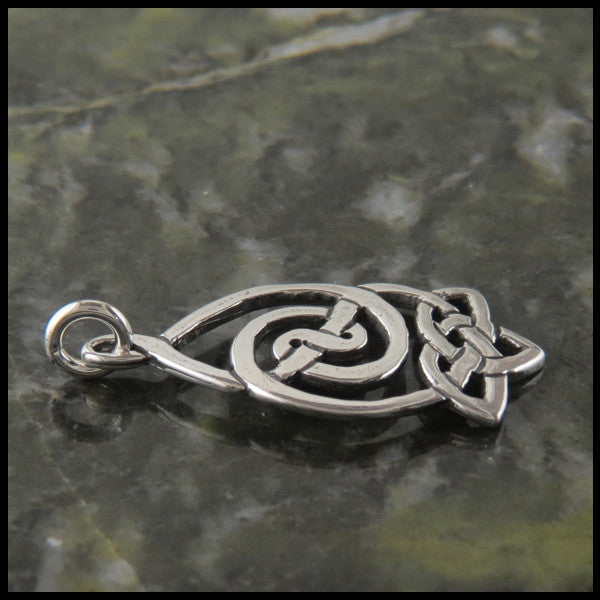 This sterling silver pendant and earring set features triquetras or trinity knots at the bottom...