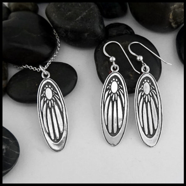 Pendant and earring set in Sterling Silver. Pendant comes on an 18" Sterling Silver Cable...