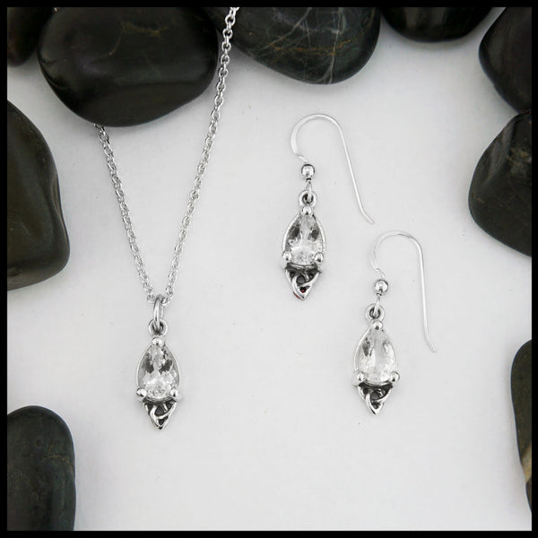 Sterling Silver teardrop pendant and earring set with Celtic knotwork designs. Pendant comes on an...