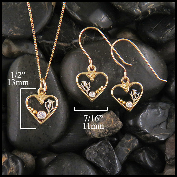 Our Celtic Colleen's Heart pendant and earrings in 14K gold are delicate lightweight hearts with a tiny...