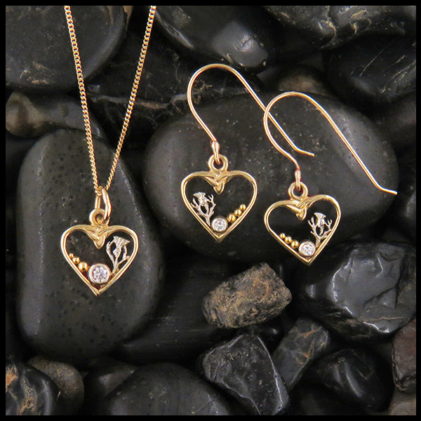 This exquisite Scottish Thistle Celtic Heart Pendant and Earrings Set is made of sterling silver and...