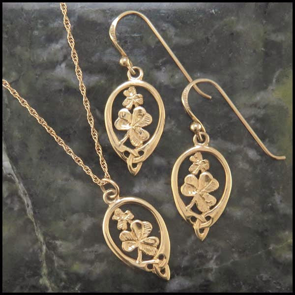 Gold Celtic Shamrock Pendant and Earring Set.Earrings Only Pendant Only View Available Chains Item number:...