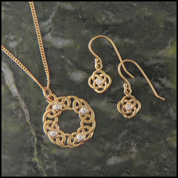Josephine's Knot Pendant in Gold. Picture is shown in 14K Rose Gold, but also available in 14K Yellow and White. This pendant is set with four 2mm Diamonds.