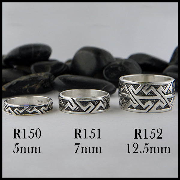 Narrow Key Pattern ring in Sterling Silver, 5mm wide.