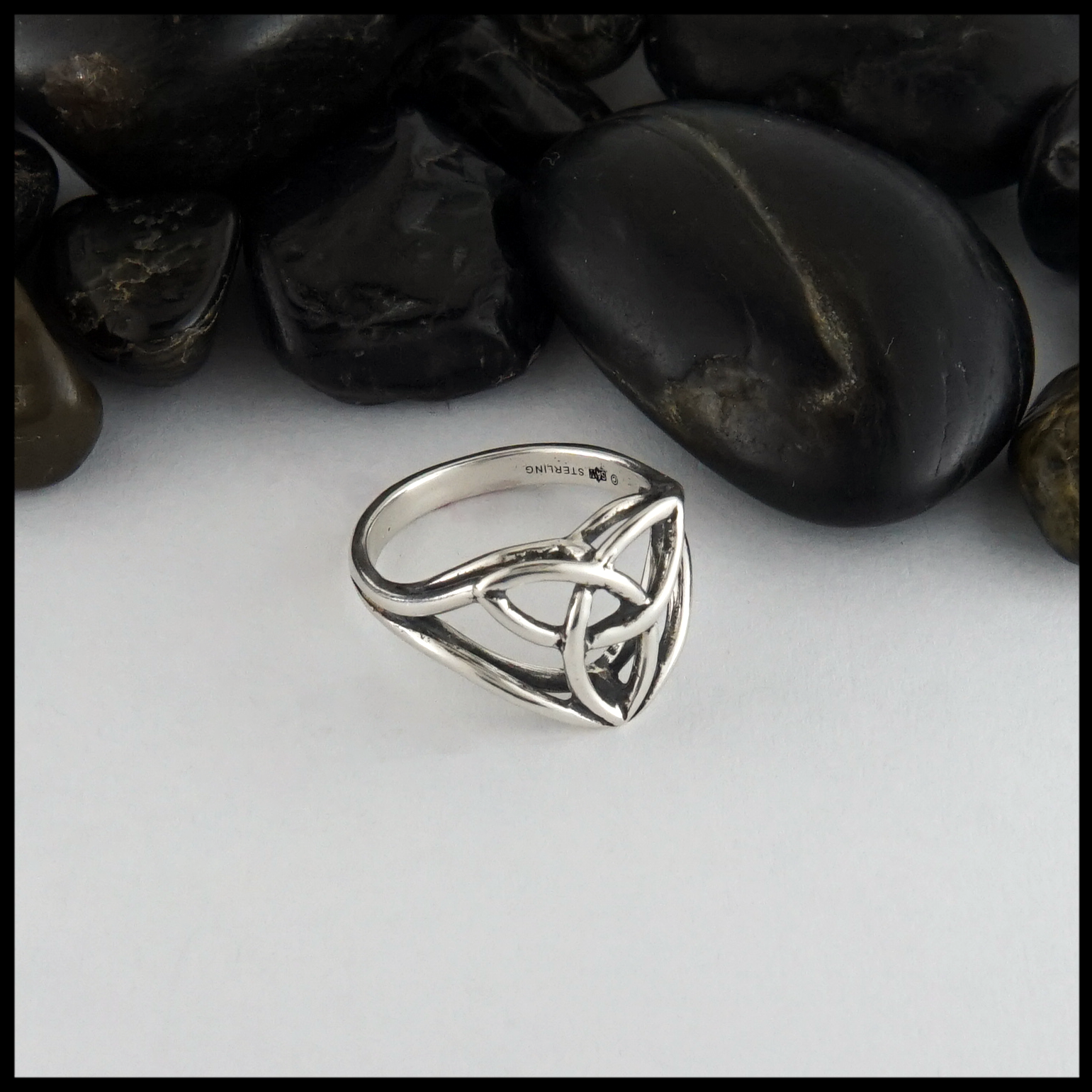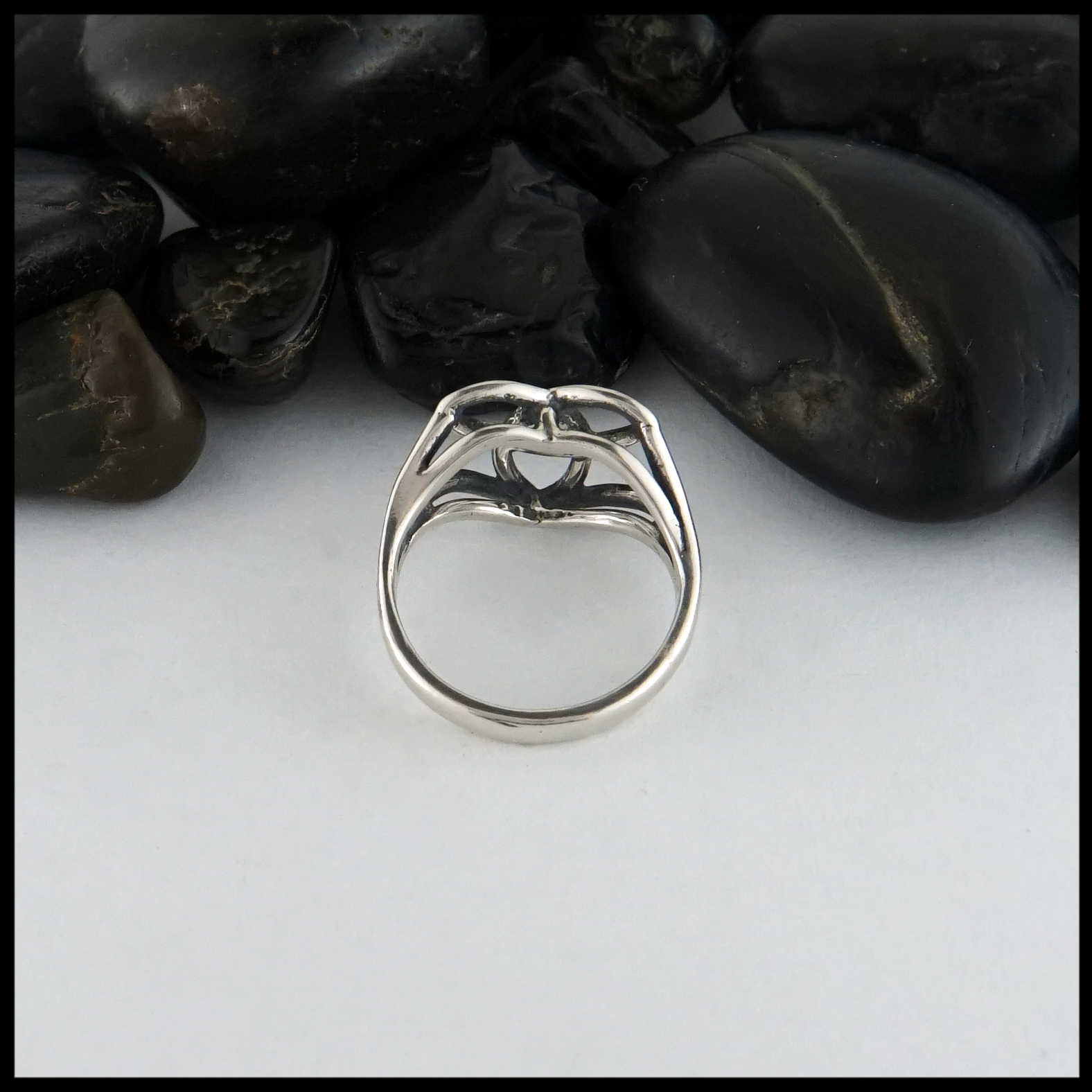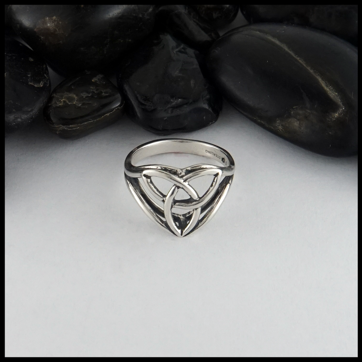 Trinity Knot ring in Sterling Silver with a unique cathedral profile.