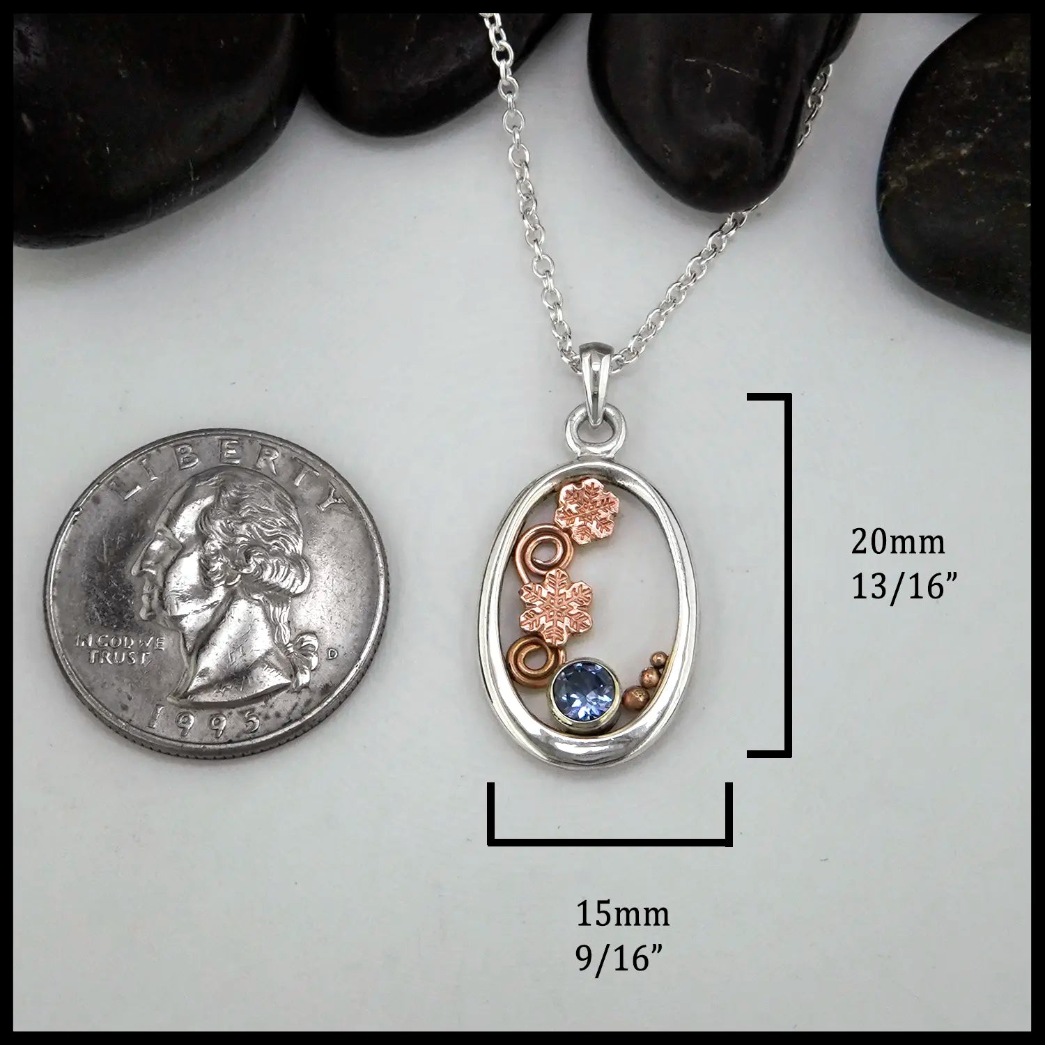 Fresh as fallen snow, and sparkling just as bright- this Tanzanite set is perfect for the colder months! Set with 5mm Tanzanites, and adorned with 14K Rose Gold details, this set is one of a kind. Made by our craftsman Nicole, this set comes with an 18" Cable Chain!