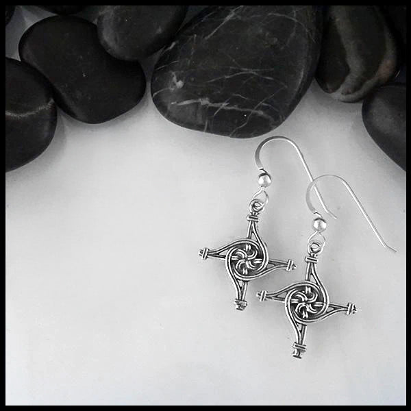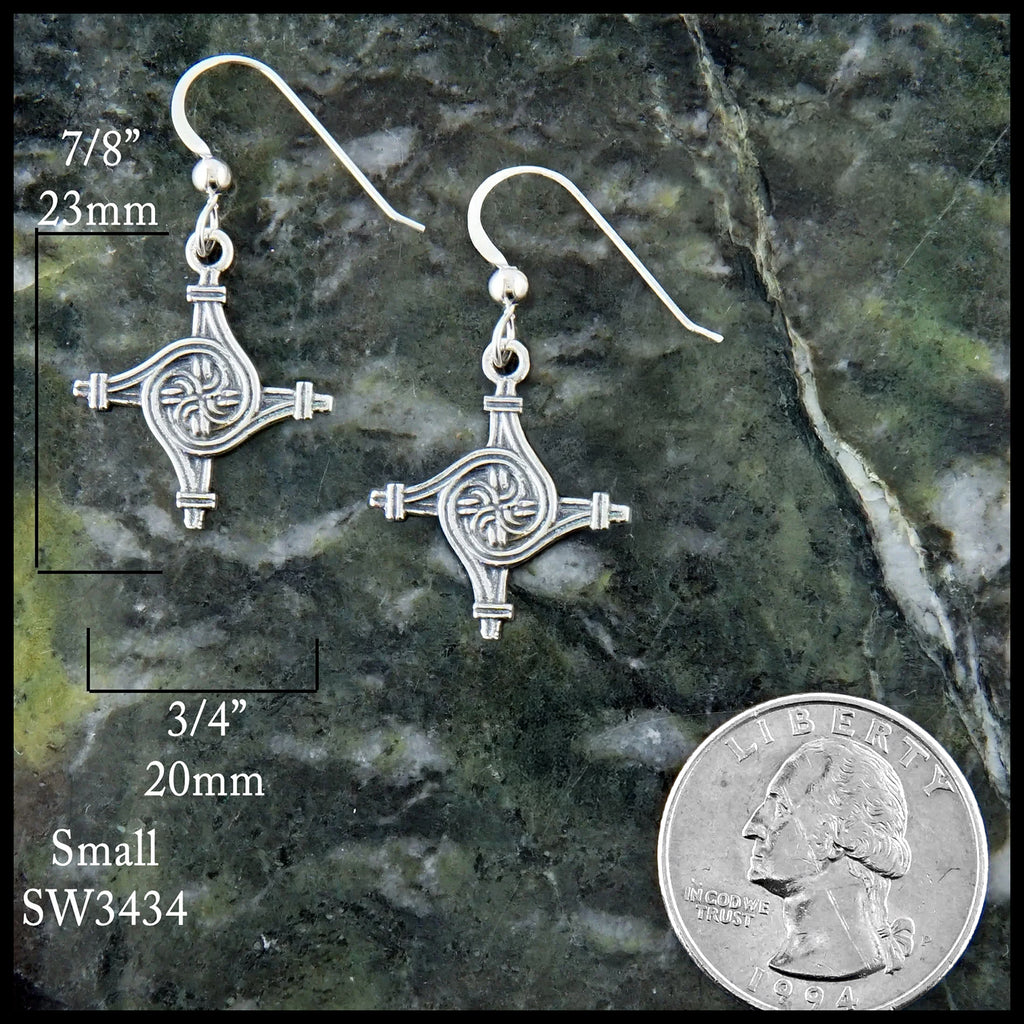 Small St. Brigid's Spiral Cross Earrings in Silver