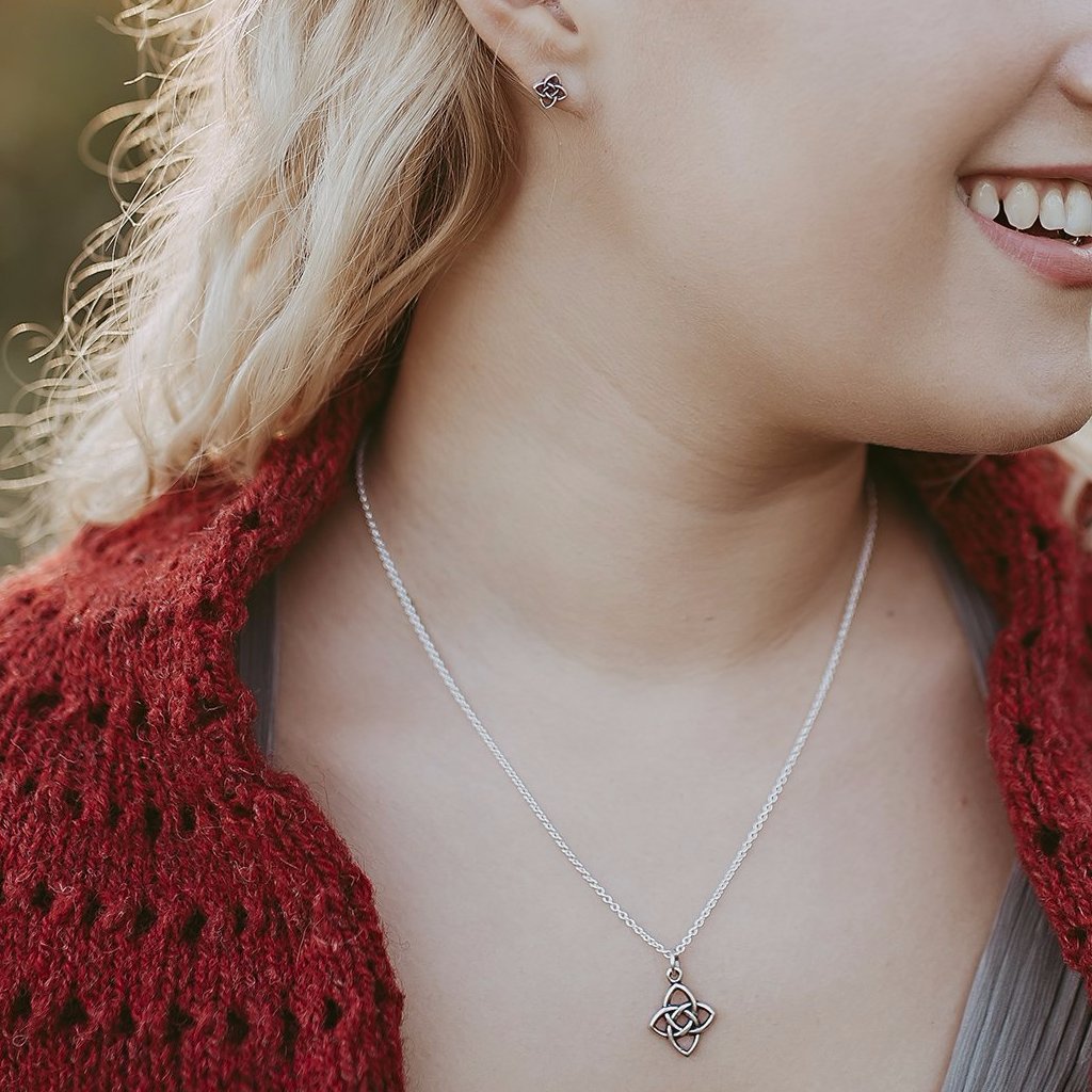 The Celtic Starlight Pendant is a dainty original design by Walker Metalsmiths in Sterling silver. New this year! It has elegant open knotwork that comes to 4 rounded points and reminds us of a star. This is perfect on its own or as part of a layering set.