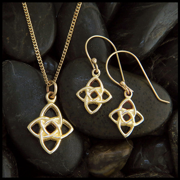 Starlight Knot Pendant and Earring Set in 14K Gold.