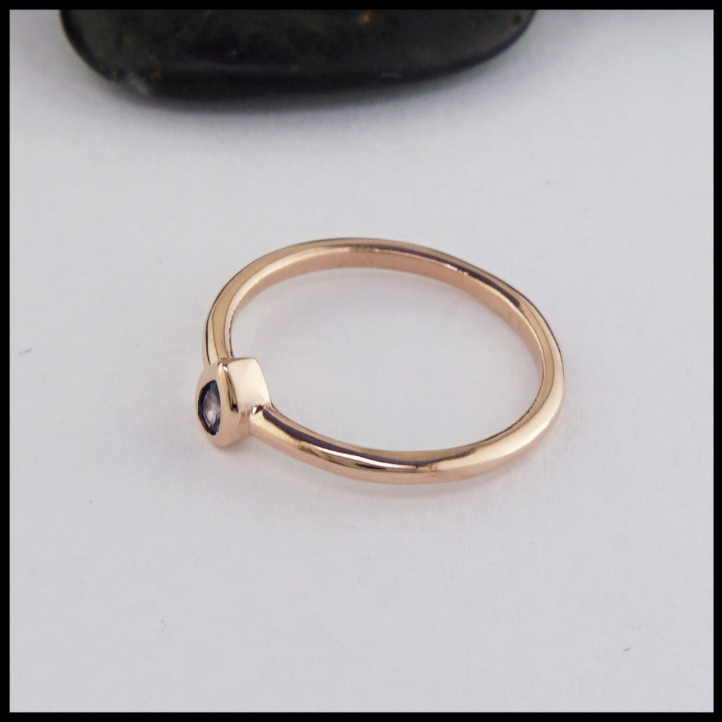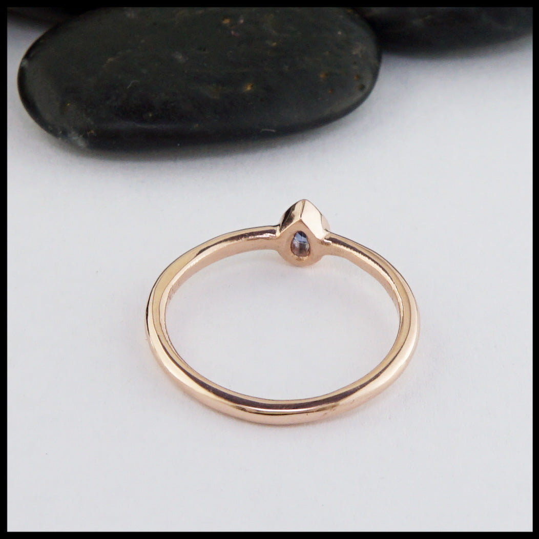 Unique 14K Rose Gold ring set with a Ceylon Sapphire stone.