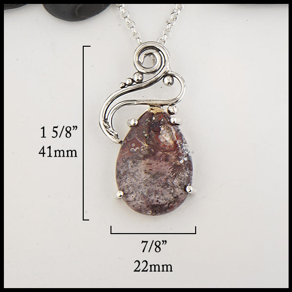 Custom Crazy Lace Agate pendant hand fabricated in sterling silver. This pendant comes on a 18" Medium Rolo Chain.