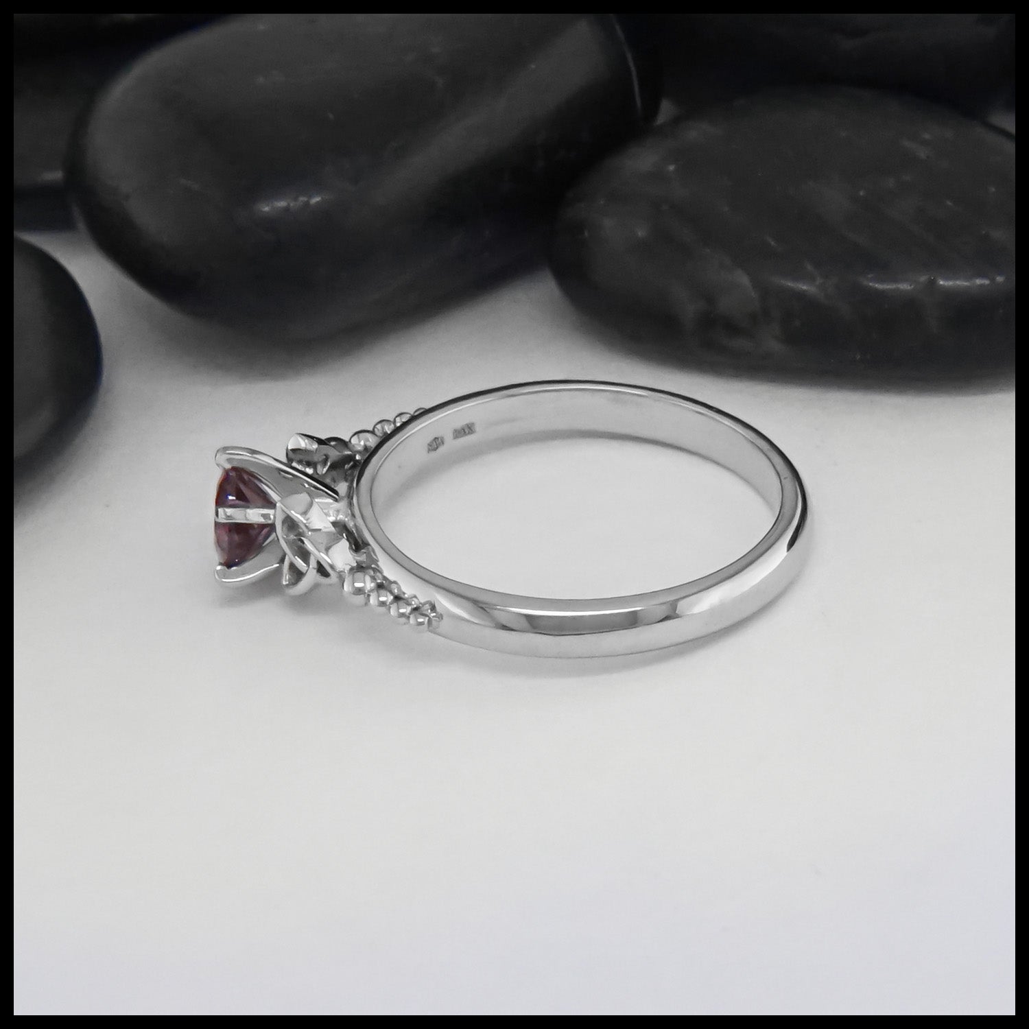 Simple custom 14K White Gold flower ring set with a Pink Tourmaline stone. This ring...