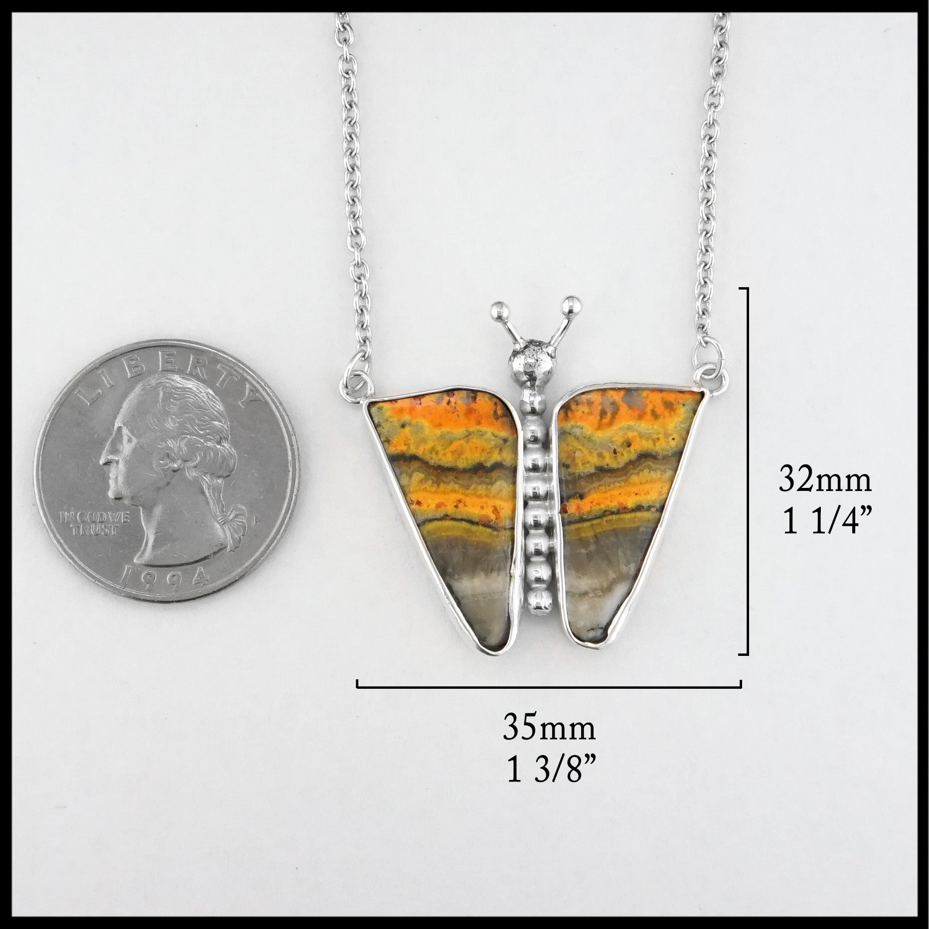 Sterling Silver butterfly pendant set with Jasper Gemstone. Pendant comes attached with Sterling Silver chain.