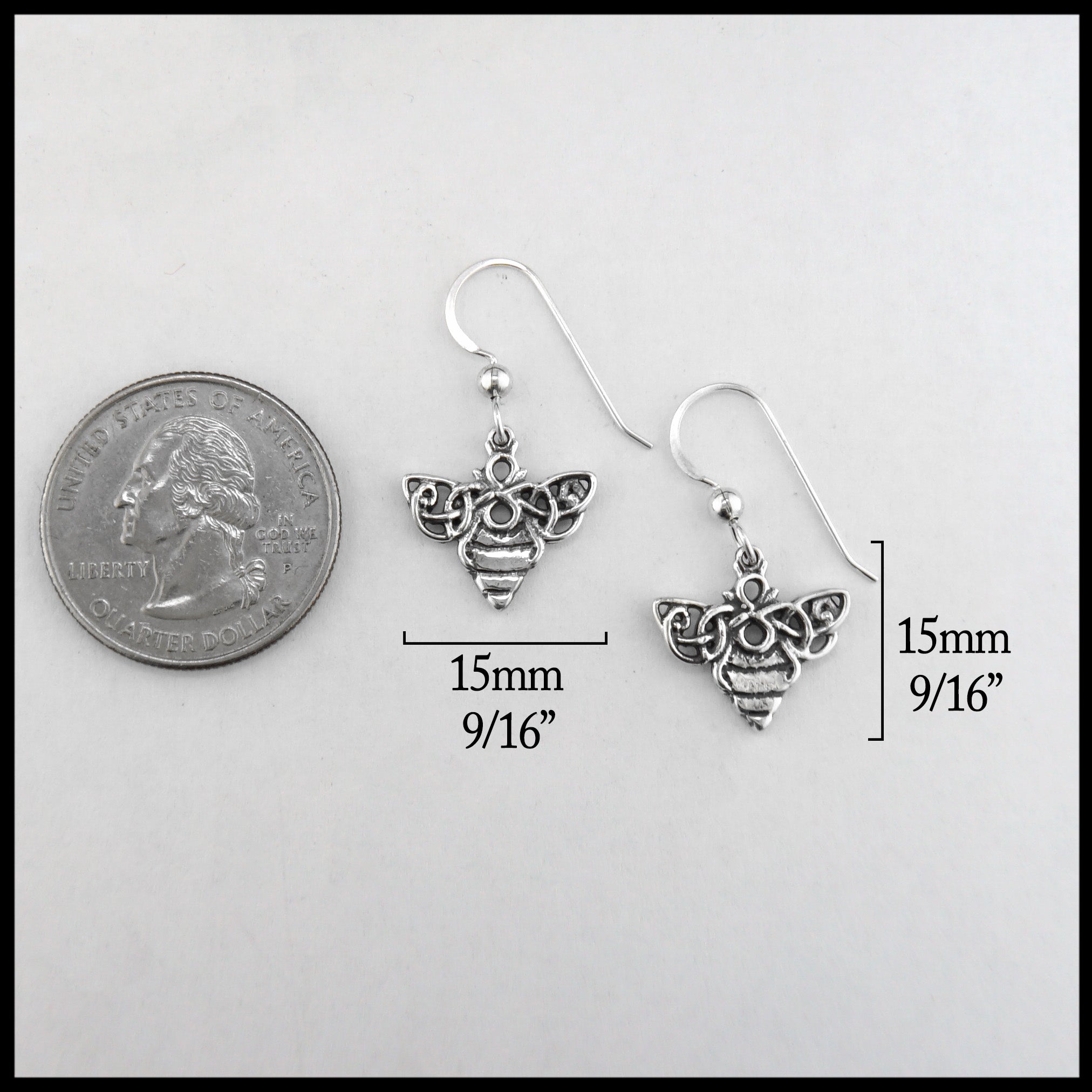 Celtic Bee pendant and earring set in Sterling Silver. Pendant comes with an 18" silver cable chain.